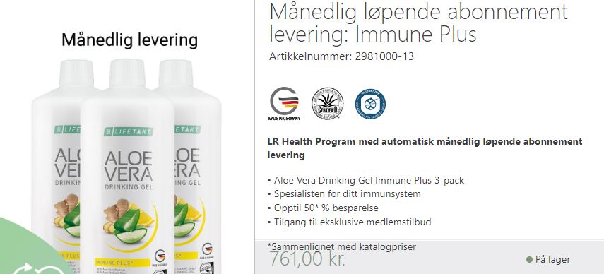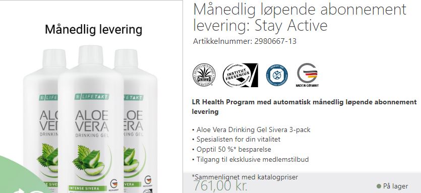 Med LR sitt helseprogram sparer man opptil 50 % fra katalogpris